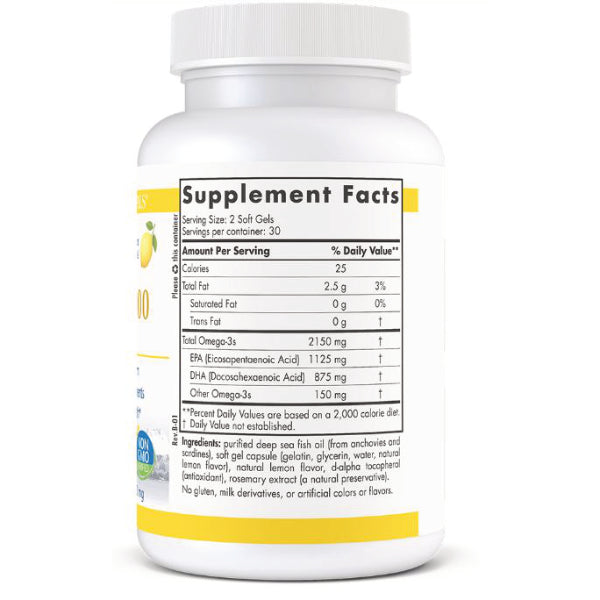 In just two soft gels, Nordic Naturals ProOmega 2000 delivers 2000mg of EPA and DHA in the highly absorbable 90+% triglyceride molecular form. Omega-3 optimizes cognitive, visual, and neurological health by facilitating cellular flexibility and communication. They support cardiovascular function by maintaining healthy triglyceride and blood pressure levels.