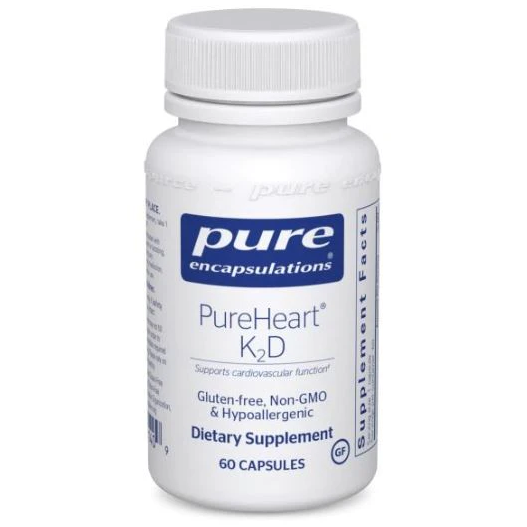 Vitamin K2 (menaquinone-7) promotes healthy vascular calcium balance and cardiovascular function. In a systematic review involving fivestudies, higher intakes of vitamin K2 were associated with cardiovascular health.1 Research indicates that it supports the carboxylation of matrix Gla-protein (MGP), a key protein involved in calcium balance.2 Unlike vitamin K1, which promotes bone health, menaquinone-7 targets vascular tissue to support healthy arterial blood flow and vascular elasticity.3 In an observational study involving 564 postmenopausal women, higher intake of vitamin K2 was associated with calcium balance in the vascular tissue.4 Optimal serum levels of vitamin D are also important to maintain healthy calcium balance in vascular tissues, in part by supporting the activity of MGP.5 Studies indicate that the combination of vitamin K and D provides synergistic support.6 Vitamin K supplementation may be contraindicated for those taking Coumadin(warfarin), an anticoagulant medication.